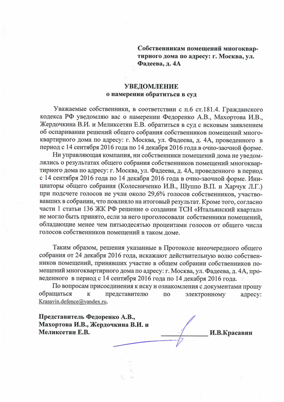 Намерение собственников обратиться в суд