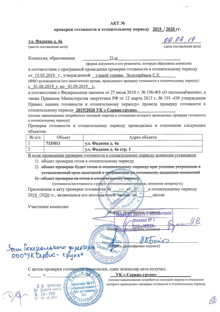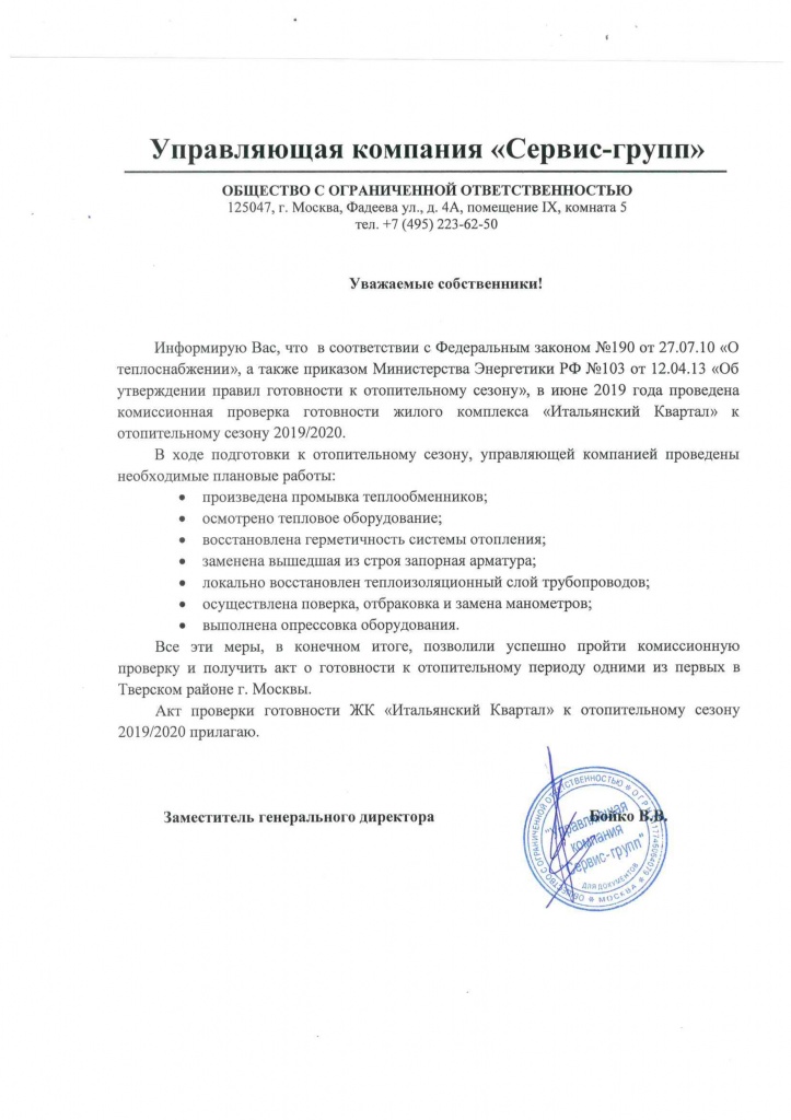 О получении акта готовности к отопительному сезону 2019-2020 гг