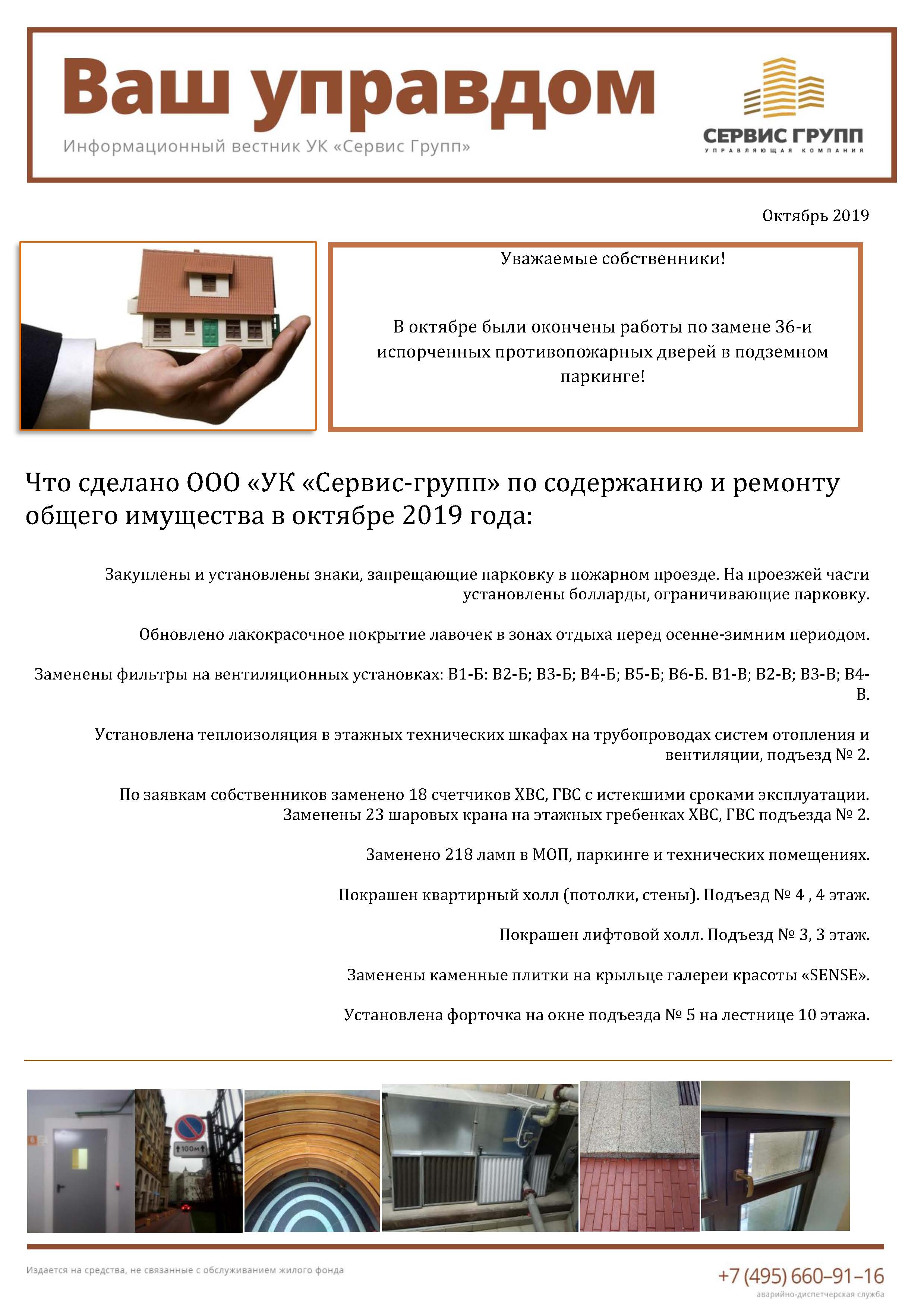 Информационный вестник ООО "УК "Сервис-групп" за октябрь